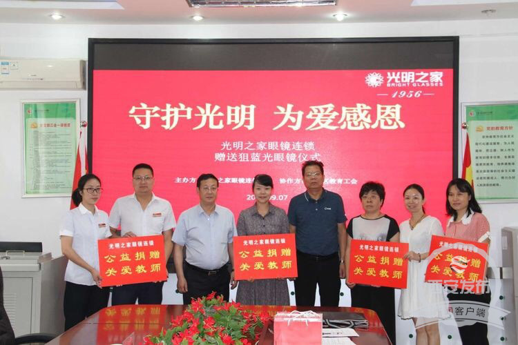 在第34個(gè)教師節(jié)來臨前夕,碑林區(qū)教育工會(huì)攜手光明之家眼鏡連鎖公司組織的“守護(hù)光明 為愛感恩”愛心捐贈(zèng)活動(dòng)正式開始。捐贈(zèng)儀式上,文藝路小學(xué)、碑林區(qū)少年宮、東木頭市幼兒園的工會(huì)主席和學(xué)校教師作為受贈(zèng)代表接受了光明之家的愛心捐贈(zèng),并留下了美好的瞬間。此次活動(dòng)斥資100萬,為碑林區(qū)的老師們送去了5000副狙藍(lán)光功能性眼鏡及眼健康禮包,同時(shí)也送上溫馨的祝福與慰問。大家共同期望著廣大老師及青少年們能擁有一個(gè)光明的未來。